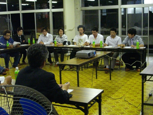 青年部員である以上、地域の商工業の次世代を担う役割があります。だけど、現場の第一線で働いている青年部員は、商工会とは何かという事すら知る機会が少ないのが現状。 こんな事ではいかん!商工会とはどういう団体なのか、青年部はその中でどのような事をしていかなければならないのかといった事をこの際トップに直接伺おう!というのが今回の趣旨。 さすが三役さん。詳しく説明してくれました。 青年部員のうちは遊べ! という部分だけを覚えていてはダメですよ? ![]() 忙しい中、意見交換会ばかりでなく、その後の懇親会にも出席して下さった三役の皆様ありがとうございました。